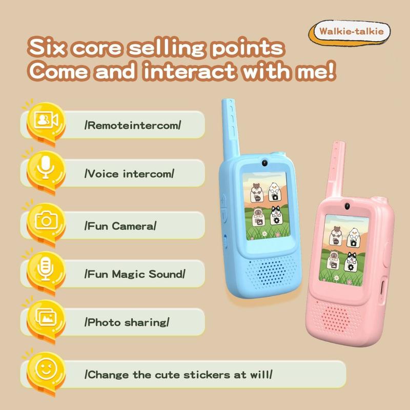 Équipé de plusieurs effets de changement de voix (dessin animé, enfant mignon et voix grave), cet appareil ajoute une touche d'amusement à chaque conversation. Les enfants peuvent prendre des photos à l'aide de l'appareil photo intégré, les décorer avec d'adorables autocollants et les partager instantanément avec leurs amis. Les options d'emoji interactifs renforcent l'expression émotionnelle, rendant la communication vivante et imaginative.