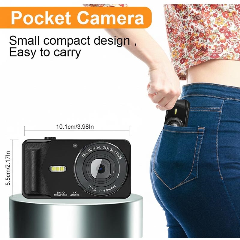 • A59 Appareil photo numérique compact avec écran IPS de 2.8″ - 64MP Photos, 18× Zoom, 2K Video (4K Interpolated)