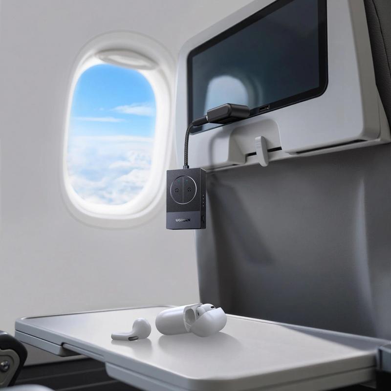 La conception à double prise jack 3.5mm le rend particulièrement utile dans les avions et pour l'écoute partagée. Vous pouvez coupler deux casques Bluetooth en même temps, afin que deux personnes puissent regarder ou écouter ensemble à partir d'une seule source. Une batterie intégrée offre jusqu'à 19 heures d'utilisation, et le chargement USB-C permet de le recharger facilement avec des chargeurs modernes. Des voyants LED et des boutons dédiés facilitent le couplage et la vérification de l'état lorsque vous voyagez.