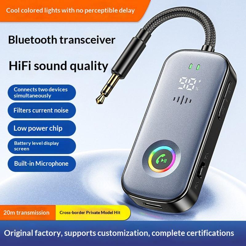 Récepteur et émetteur audio Bluetooth A6 Pro pour voiture / Adaptateur AUX Bluetooth 5.2 avec éclairage RGB