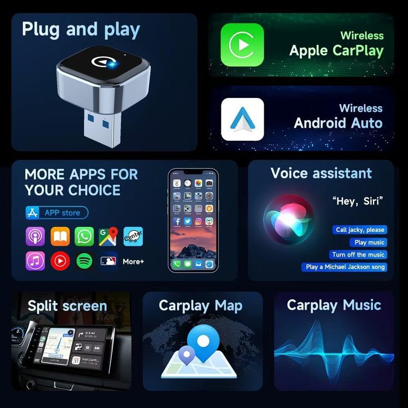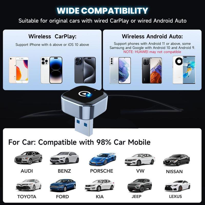 - Prend en charge à la fois CarPlay sans fil et Android Auto sans fil