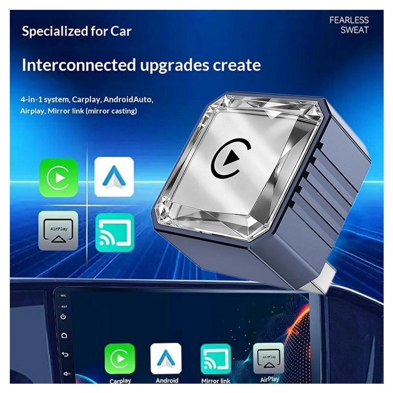 Adaptateur CarPlay sans fil 4-en-1 Q1BVS en forme de losange / Boîtier intelligent compatible CarPlay, Android Auto, AirPlay et MirrorLink