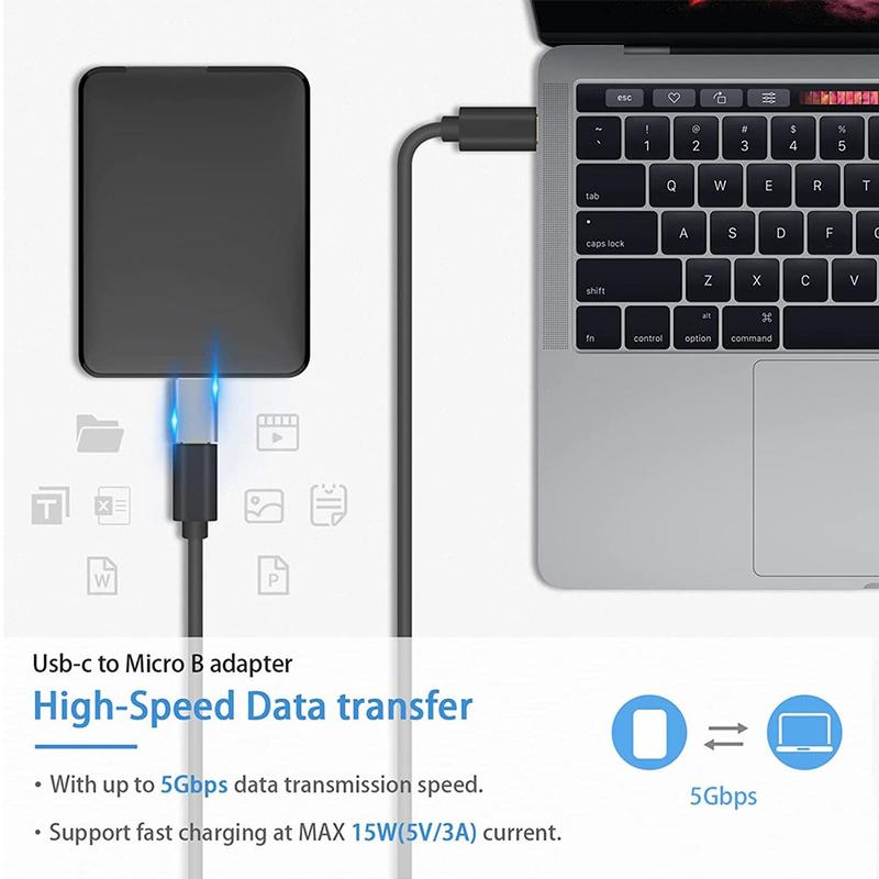 Si vous possédez déjà un disque dur externe Micro USB 3.0, cet adaptateur vous permet de continuer à l'utiliser avec des appareils USB-C plus récents. Il vous évite de remplacer vos câbles, vous permet de conserver une configuration compacte et offre des vitesses de transfert rapides pour vos tâches de stockage quotidiennes. Un accessoire pratique pour tous ceux qui passent à un ordinateur portable USB-C tout en conservant leurs anciens disques durs portables.