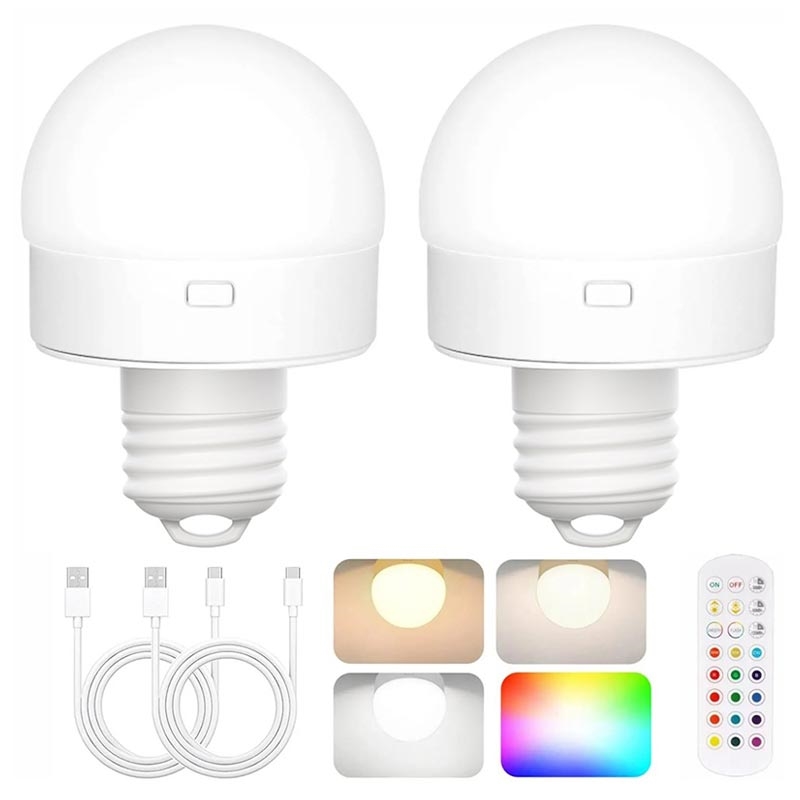 Ampoule rechargeable avec RGB et télécommande - E27 - 2 Pcs.