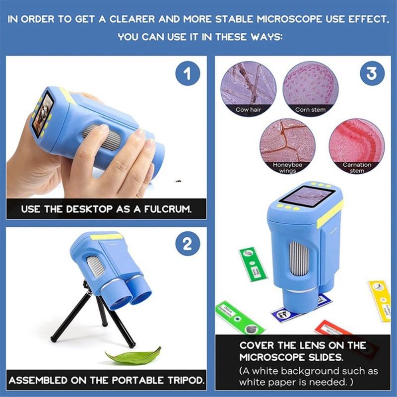 Grâce à la vidéo Full HD 1080P, à l'éclairage LED réglable et à la possibilité de prendre des photos et d'enregistrer des vidéos, les enfants peuvent facilement capturer ce qu'ils observent et partager leurs découvertes. C'est un mélange parfait d'éducation, de créativité et d'amusement.