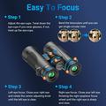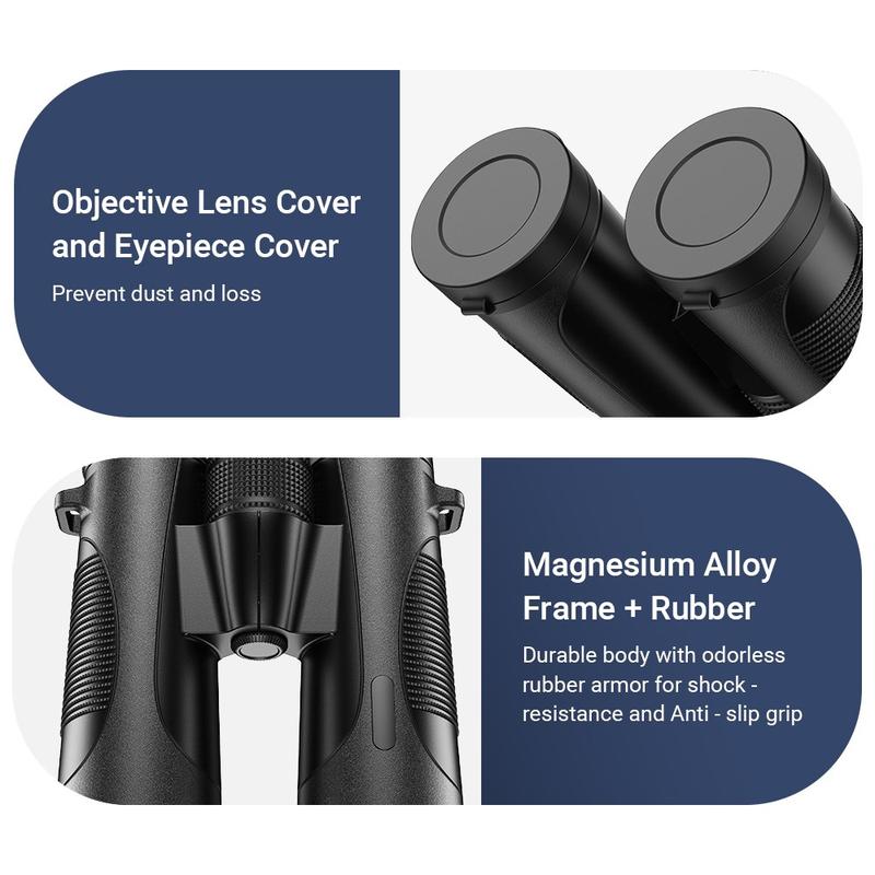 Conçues pour fonctionner par tous les temps, ces jumelles sont étanches selon la norme IPX7, ce qui garantit une vision claire même en cas de forte pluie ou d'humidité. L'extérieur recouvert de caoutchouc offre une prise en main sûre et antidérapante, ainsi qu'une meilleure résistance aux chocs pour une utilisation robuste en extérieur.