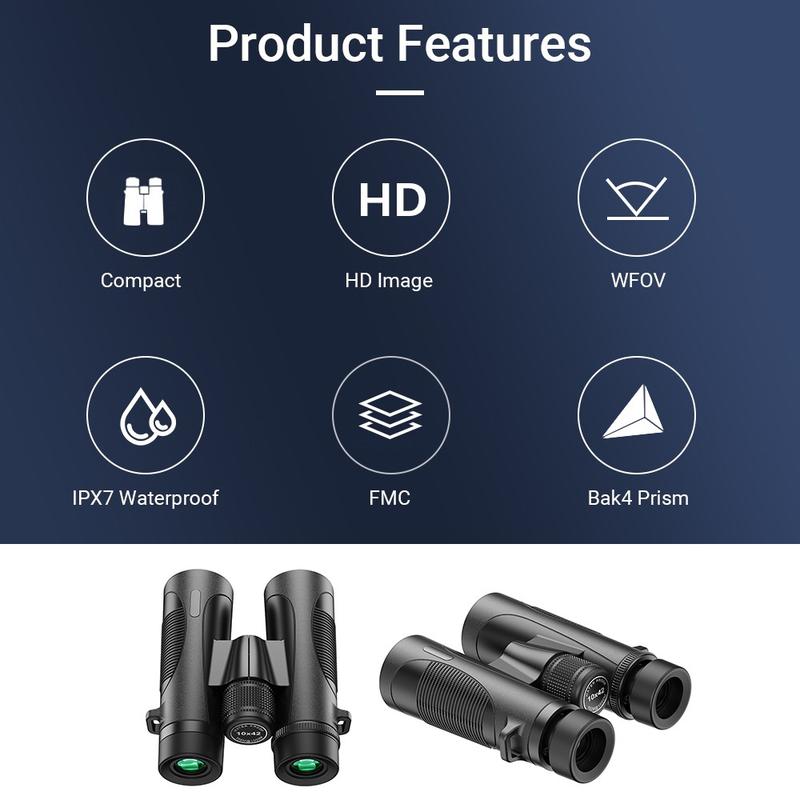 • Jumelles étanches Apexel 10x42 HD - Traitement multicouche FMC, prisme BAK4, vision nocturne pour l'observation des oiseaux, la chasse et les activités de plein air