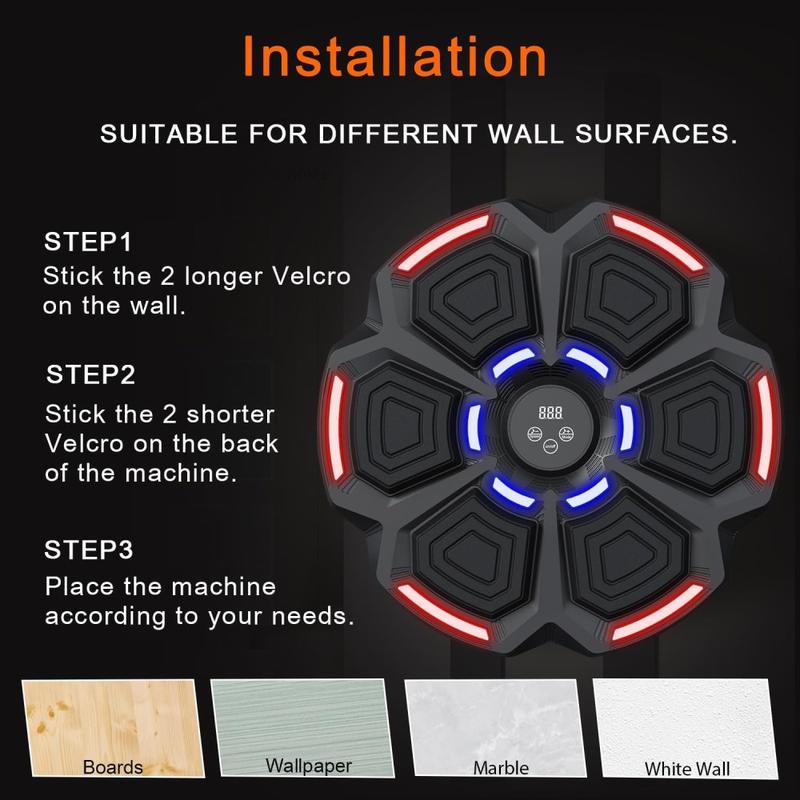 Rendez vos séances d'entraînement à domicile plus dynamiques et captivantes grâce à cette machine de boxe musicale intelligente. Conçue pour l'entraînement de la réactivité, les exercices rythmiques, la coordination et le fitness au quotidien, cette cible de frappe murale combine prise en charge musicale, réglages de vitesse ajustables, retour visuel et installation peu encombrante en un seul accessoire d'entraînement pratique. Elle convient aux espaces d'exercice à domicile, aux salles de jeux, aux coins d'entraînement et aux espaces d'activité intérieurs où mouvement et plaisir peuvent aller de pair.