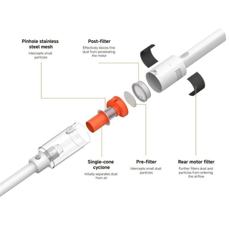 Équipé d'un moteur à grande vitesse tournant jusqu'à 110 000 tr/min, le Xiaomi P30 offre une puissance d'aspiration pouvant atteindre 50 AW pour éliminer plus efficacement la poussière fine et les débris. L'aspirateur utilise une technologie de séparation cyclonique à cône unique pour améliorer la séparation de l'air et de la poussière et réduire le risque d'obstruction du filtre pendant l'utilisation. Un système de filtration de précision en 5 étapes permet de capturer des particules aussi petites que 0,3 µm, avec une efficacité de filtration pouvant atteindre 99,8 %, contribuant ainsi à un air plus pur lors de l'aspiration.