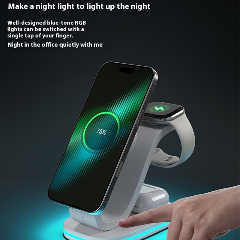B-28 Chargeur sans fil 3-en-1 avec veilleuse - alimente téléphone, montre et écouteurs en un seul endroit