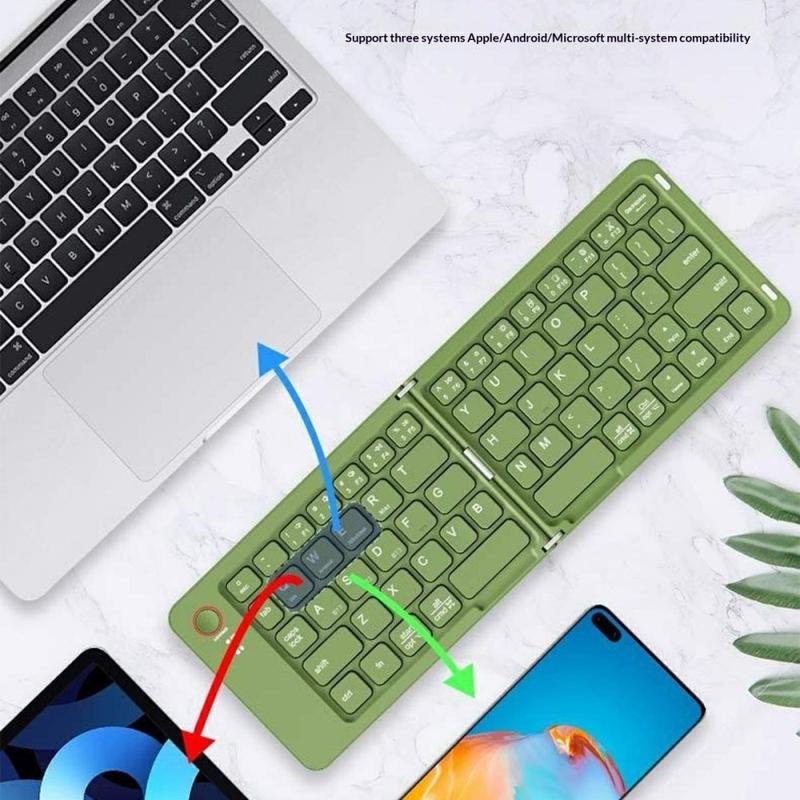 Le clavier sans fil magnétique pliable à 68 touches B023 est conçu pour les personnes qui travaillent et tapent en déplacement. Grâce à sa conception intelligente à double pliage magnétique, le clavier se plie pour atteindre une taille ultra-fine et compacte qui se glisse facilement dans un sac ou même une grande poche. Compatible avec la plupart des téléphones, tablettes et ordinateurs portables équipés de la technologie Bluetooth, il transforme n'importe quel endroit en un espace de travail productif en quelques secondes.