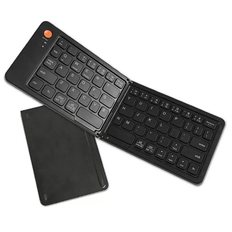 Le clavier sans fil magnétique pliable à 68 touches B023 est conçu pour les personnes qui travaillent et tapent en déplacement. Grâce à sa conception intelligente à double pliage magnétique, le clavier se plie pour atteindre une taille ultra-fine et compacte qui se glisse facilement dans un sac ou même une grande poche. Compatible avec la plupart des téléphones, tablettes et ordinateurs portables équipés de la technologie Bluetooth, il transforme n'importe quel endroit en un espace de travail productif en quelques secondes.