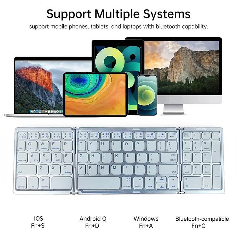 Travaillez plus confortablement où que vous soyez grâce au clavier Bluetooth pliable en trois parties B089. Conçu pour une utilisation quotidienne polyvalente, ce clavier sans fil compact se déplie pour offrir un clavier complet pratique avec un pavé numérique dédié, puis se replie en un format plus compact, idéal pour les déplacements, lorsqu’il n’est pas utilisé. C’est un excellent choix pour le travail mobile, les études, les voyages d’affaires, les trajets quotidiens et le télétravail.
