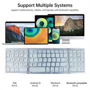 Sa conception intelligente à trois volets permet de le transporter facilement dans un sac, un sac à dos ou une housse pour ordinateur portable, tandis que la fermeture magnétique le maintient bien replié pendant le transport. Pouvant prendre en charge jusqu'à trois appareils Bluetooth, vous pouvez passer facilement de votre téléphone à votre tablette et à votre ordinateur portable à l'aide des touches dédiées BT1, BT2 et BT3. Cela rend le clavier particulièrement utile pour le multitâche sur différents appareils et systèmes d'exploitation.