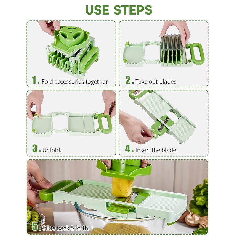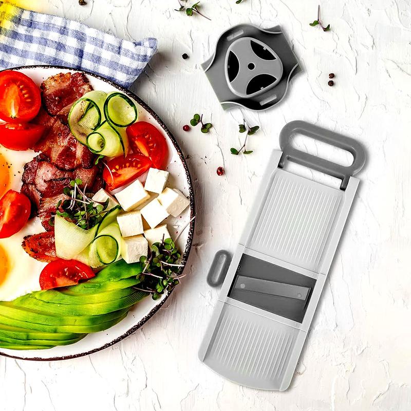 Cette trancheuse à mandoline remplace plusieurs outils de cuisine par un seul appareil compact et pliable. Ses lames tranchantes en acier inoxydable, sa construction durable et son fonctionnement simple en font l'outil idéal pour les cuisiniers à domicile qui veulent trancher rapidement, régulièrement et en toute sécurité tous les jours. Facile à nettoyer, facile à ranger et conçue pour une utilisation à long terme, elle constitue un complément fiable à toute cuisine.
