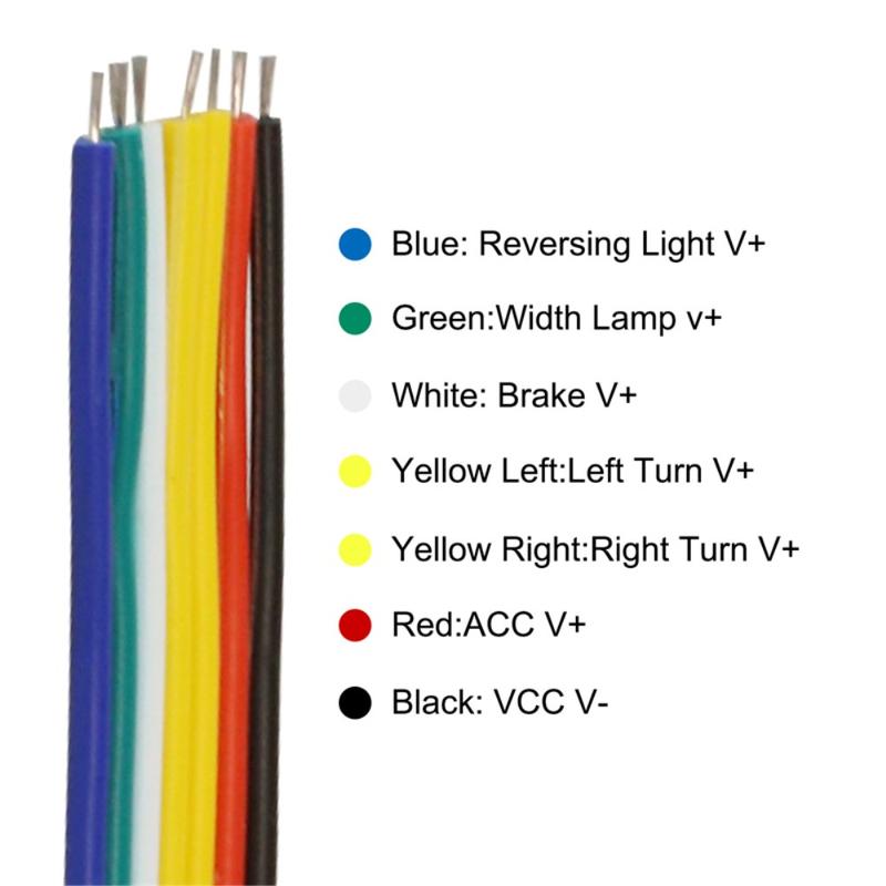 - Fil vert (feux de position) : lumière bleue glacée lorsqu'il est connecté à l'ACC / petite ligne de lumière (12V)