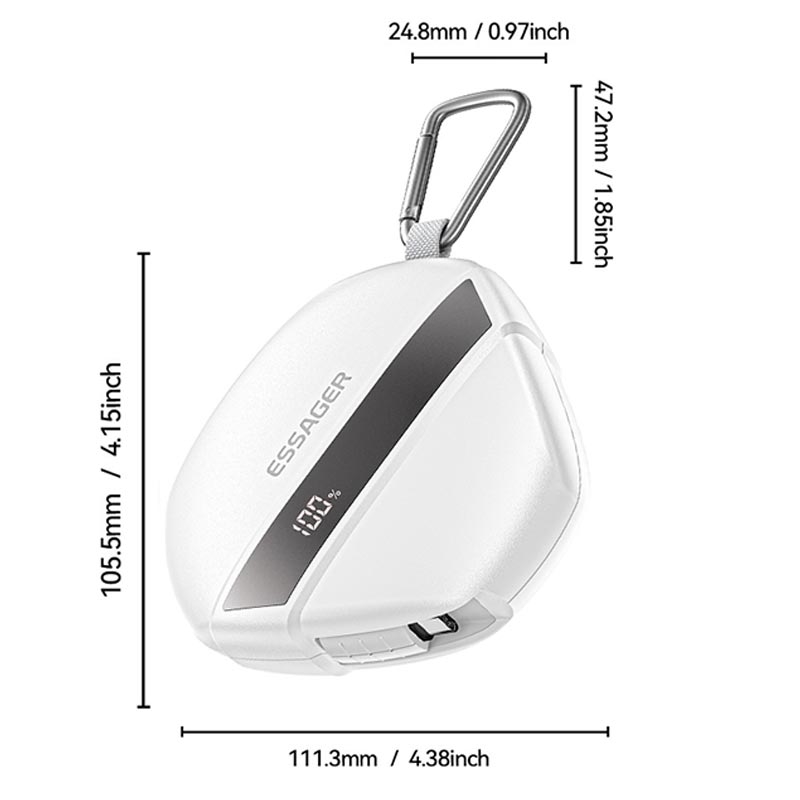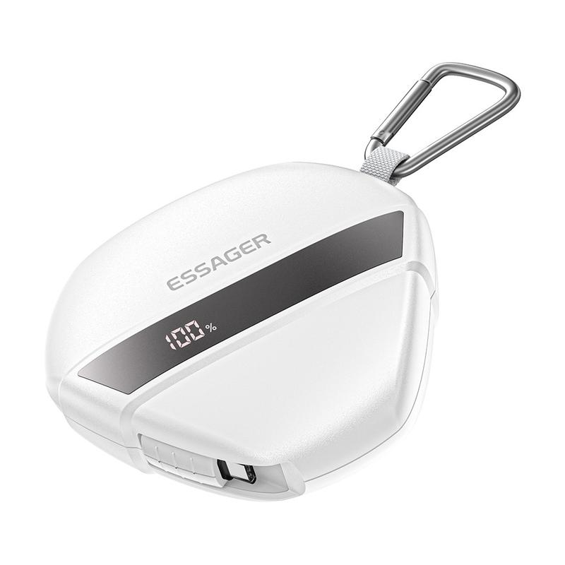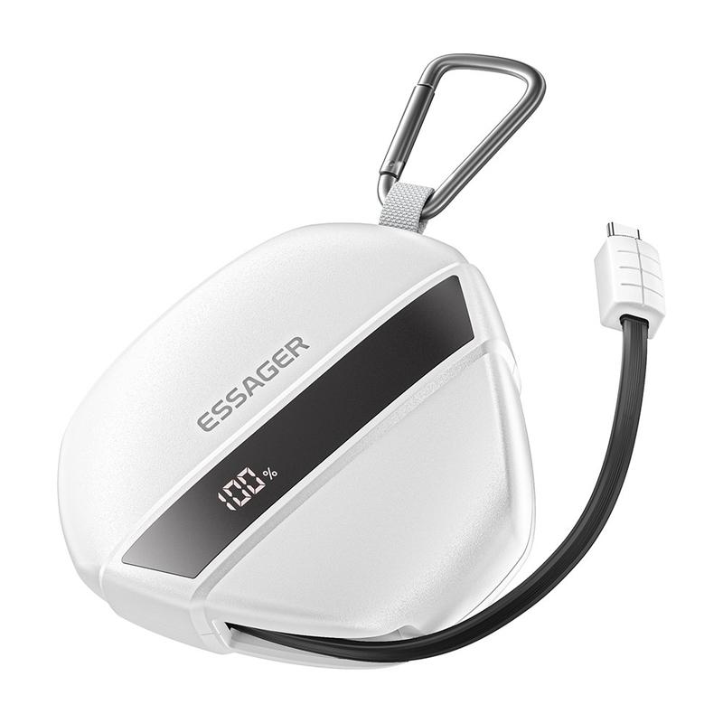 Banque d'alimentation à charge rapide Essager 10000mAh 22.5W - Batterie externe portable avec câble rétractable de 70cm intégré et mousqueton