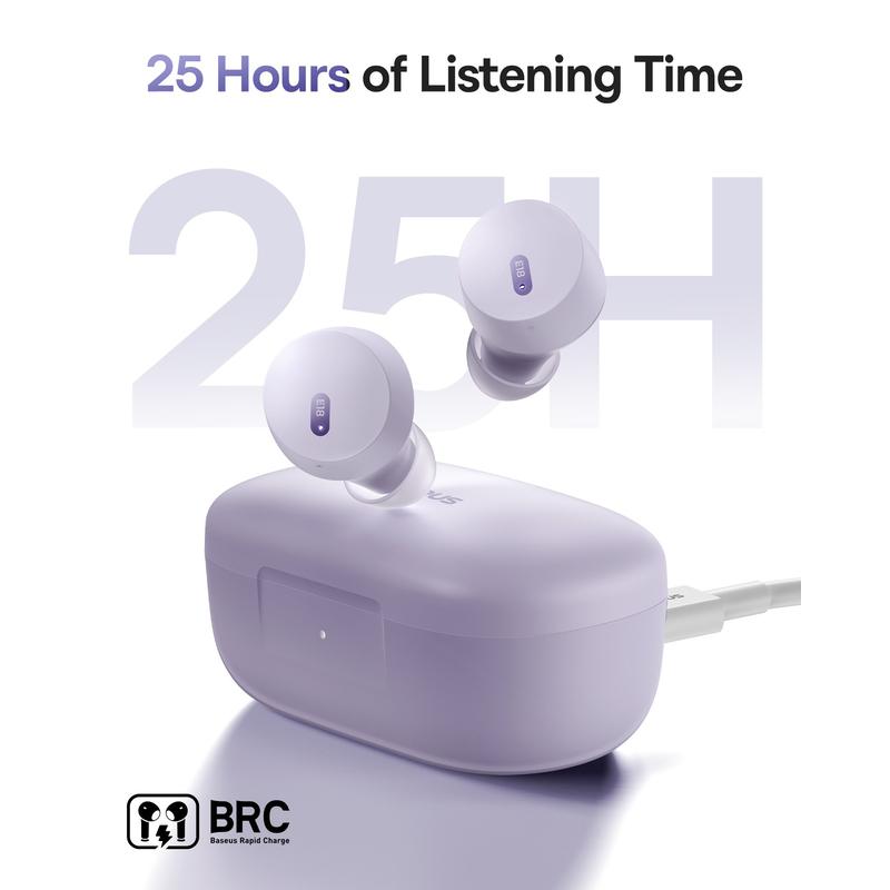 • Baseus Bowie E18 Écouteurs True Wireless - Casque intra-auriculaire Bluetooth 5.3 avec réduction du bruit ENC et 25 heures d'autonomie