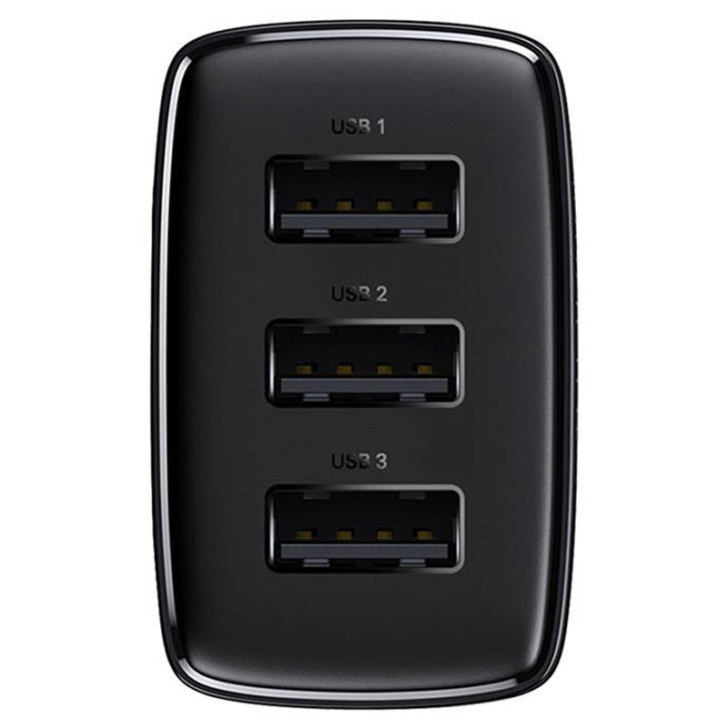 • Baseus Compact Quick Charger, 3x USB, 17W (Black)