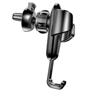 Support de téléphone gravitationnel Baseus, monté sur la grille d'aération de la voiture. La plage de réglage du support est de 360 degrés. Conçu pour les téléphones de 63 à 88 cm de large. Les pinces latérales du support s'adaptent automatiquement à la largeur du téléphone. Le rail découpé permet de brancher le chargeur.
