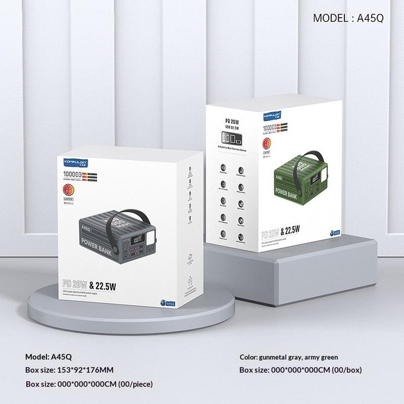 Batterie externe Konfulon A45Q 100000mAh - Charge rapide 22.5W - Gris