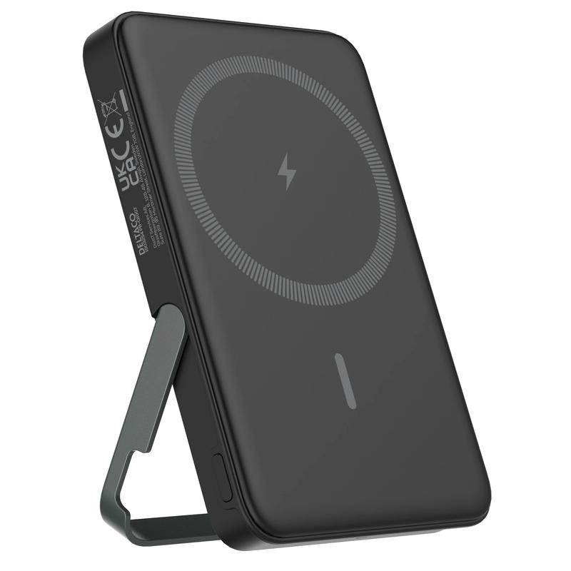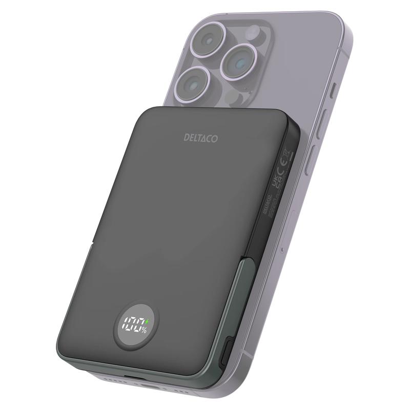 • Batterie externe magnétique sans fil Deltaco 5000mAh avec support - Chargeur portable USB-C PD 20 W