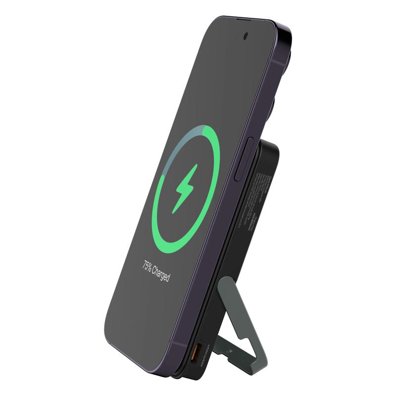 Avec une puissance de recharge sans fil allant jusqu'à 15 W pour les appareils compatibles et jusqu'à 7,5 W pour les iPhone, il facilite la recharge sans câble. L'aimant intégré est compatible avec la solution magnétique d'Apple et les systèmes similaires, ce qui permet de maintenir la batterie externe bien alignée pendant son utilisation. Le support intégré offre une flexibilité supplémentaire, facilitant le visionnage de vidéos, la navigation sur Internet ou la participation à des appels pendant que votre téléphone se recharge.