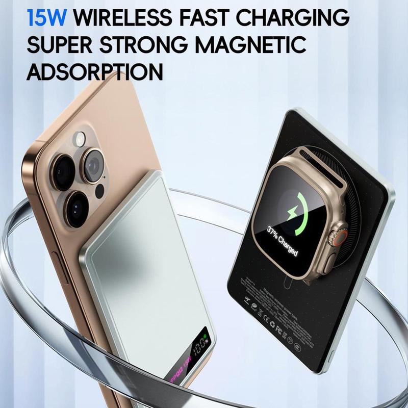 Batterie externe F16 ultra-fine de 10000mAh avec recharge magnétique, recharge sans fil 15 W, port USB-C PD 20 W et écran numérique - Compatible MagSafe - iPhone, AirPods et Apple Watch