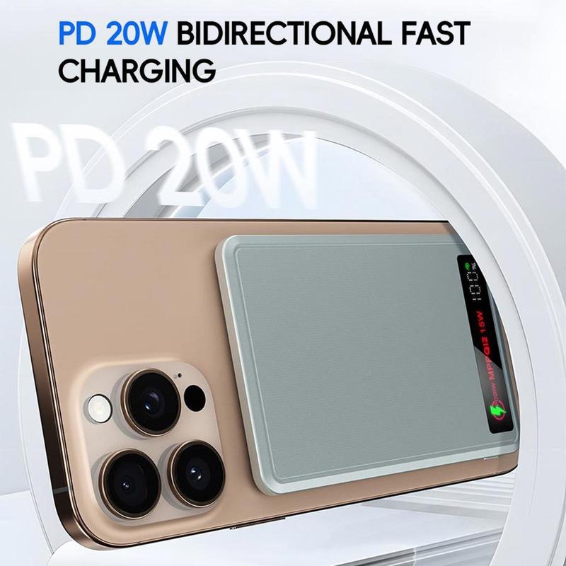 Cette batterie externe prend en charge à la fois la recharge rapide sans fil et filaire, vous offrant ainsi plus de flexibilité en fonction de votre appareil et de vos besoins de recharge. Elle offre une recharge sans fil jusqu'à 15 W via les modes compatibles QI et une recharge rapide filaire PD jusqu'à 20 W via le port USB-C. Elle est donc idéale pour recharger rapidement les smartphones et accessoires compatibles lorsque vous avez besoin d'énergie au cours de la journée.