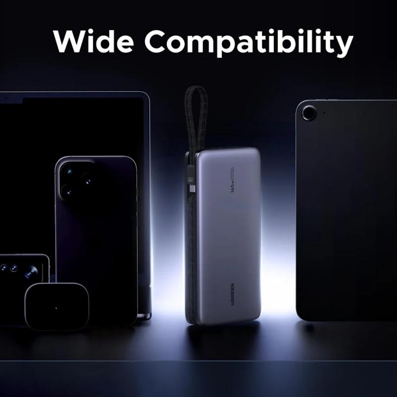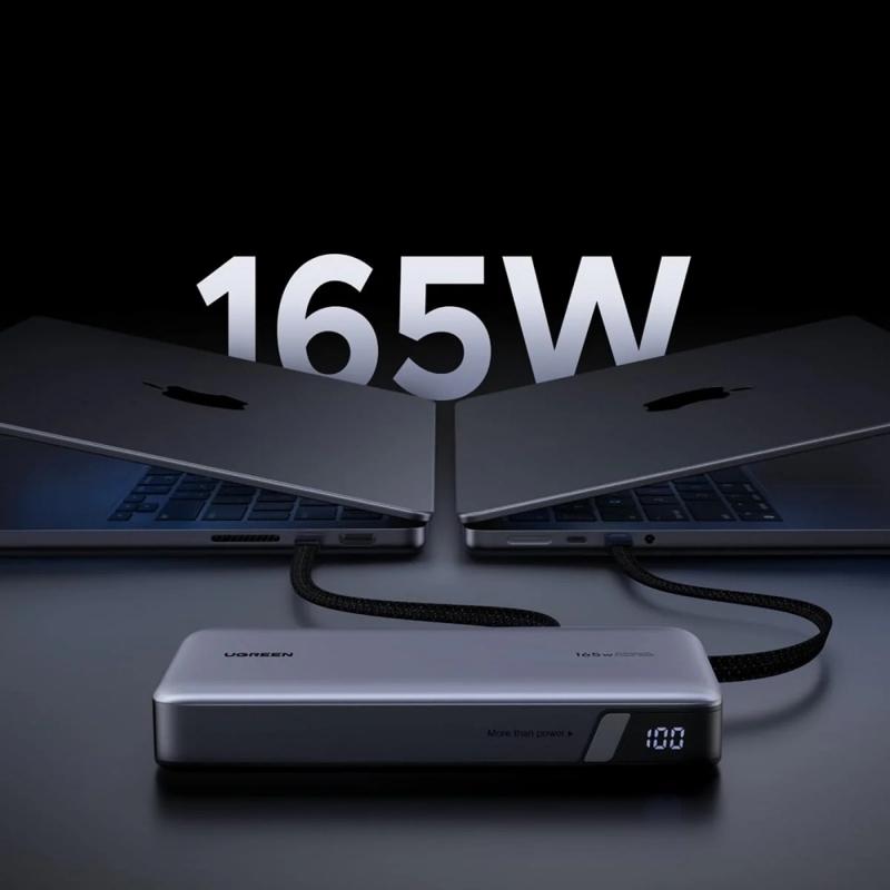 L'Ugreen PB552 est une batterie externe haute performance conçue pour les utilisateurs intensifs qui ont besoin d'une alimentation importante loin d'une prise électrique. Avec une capacité de 25 000 mAh et une puissance totale pouvant atteindre 165W, elle permet de recharger efficacement les ordinateurs portables, les tablettes, les smartphones et les accessoires pendant les voyages, le travail à distance, les réunions et les longues journées en déplacement. Deux câbles USB-C intégrés permettent de garder votre installation propre et prête à l'emploi, et la possibilité de recharger jusqu'à quatre appareils à la fois en fait un hub de recharge tout-en-un fiable que vous pouvez emporter avec vous.