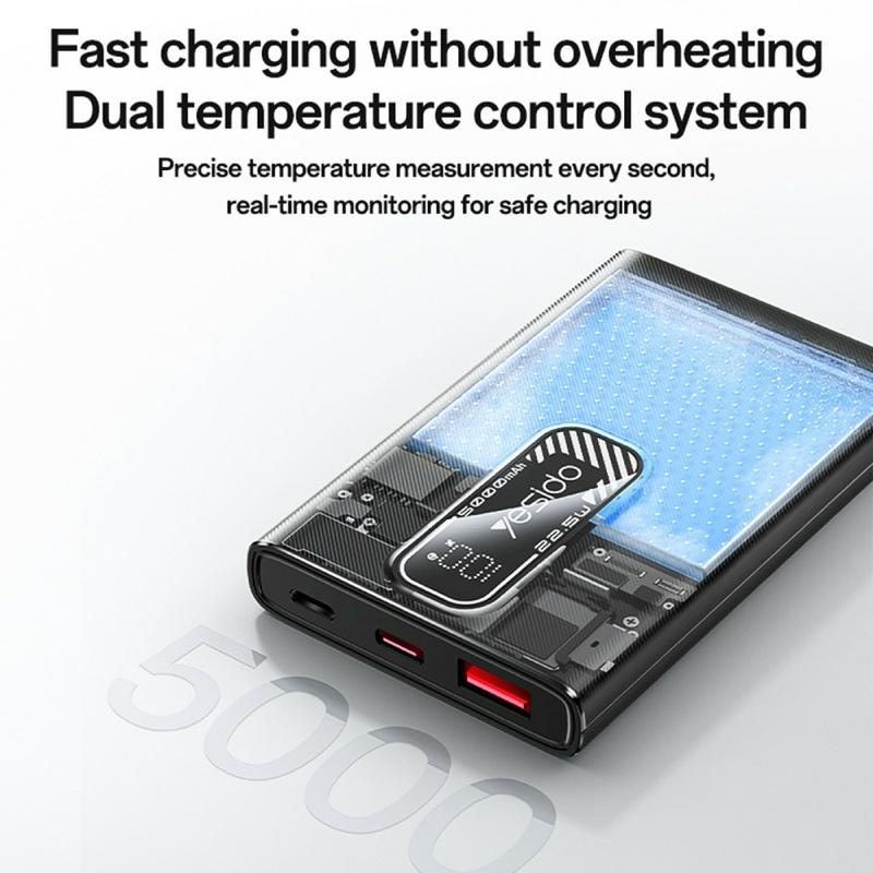 Batterie externe ultra-fine Yesido YP92 5000 mAh – charge rapide 22,5 W avec affichage numérique (Chargement rapide avec affichage numérique)