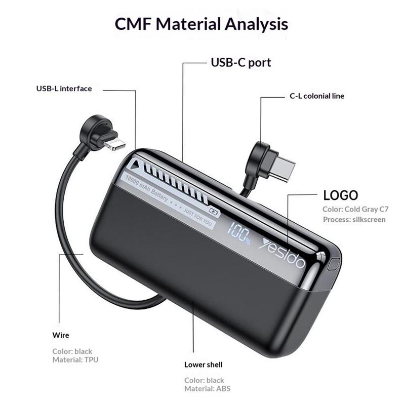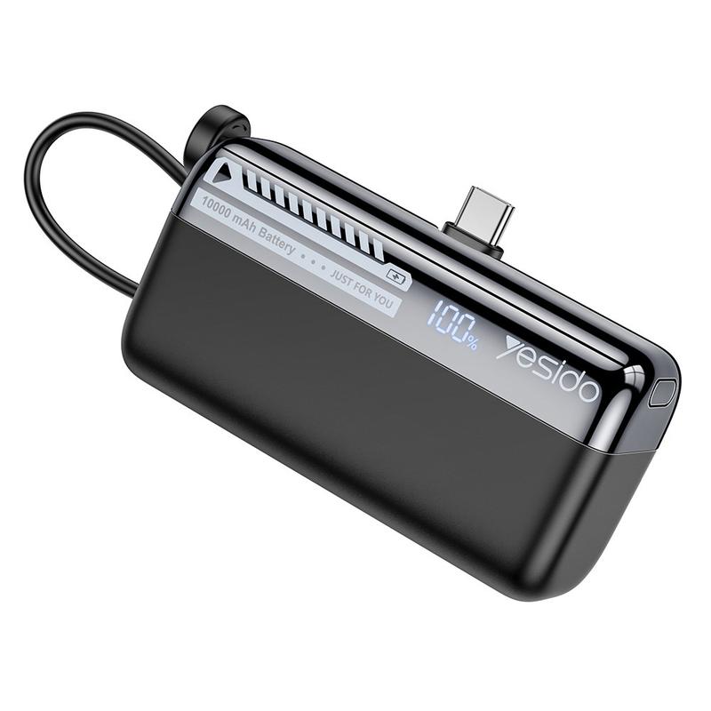 Batterie externe Yesido YP99 10000mAh avec câble USB-C vers Lightning intégré - Noir