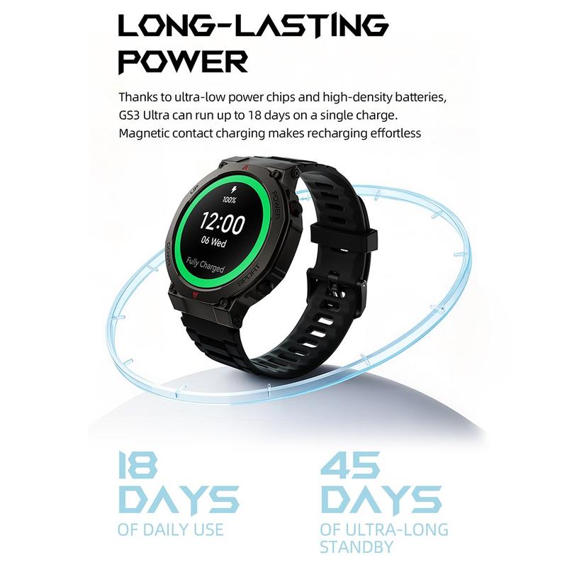 - Construction durable - Doté d'un cadre en alliage de zinc et d'un verre Gorilla Corning, le GS3 Ultra est suffisamment résistant pour être porté tous les jours et pour les séances d'entraînement intenses.