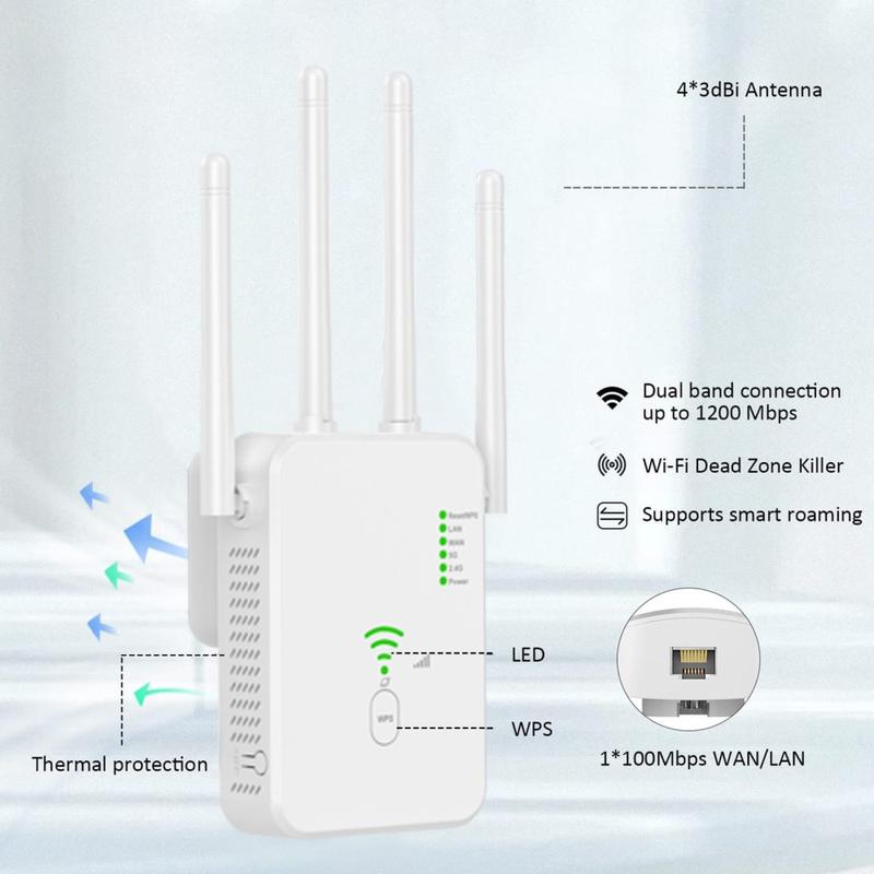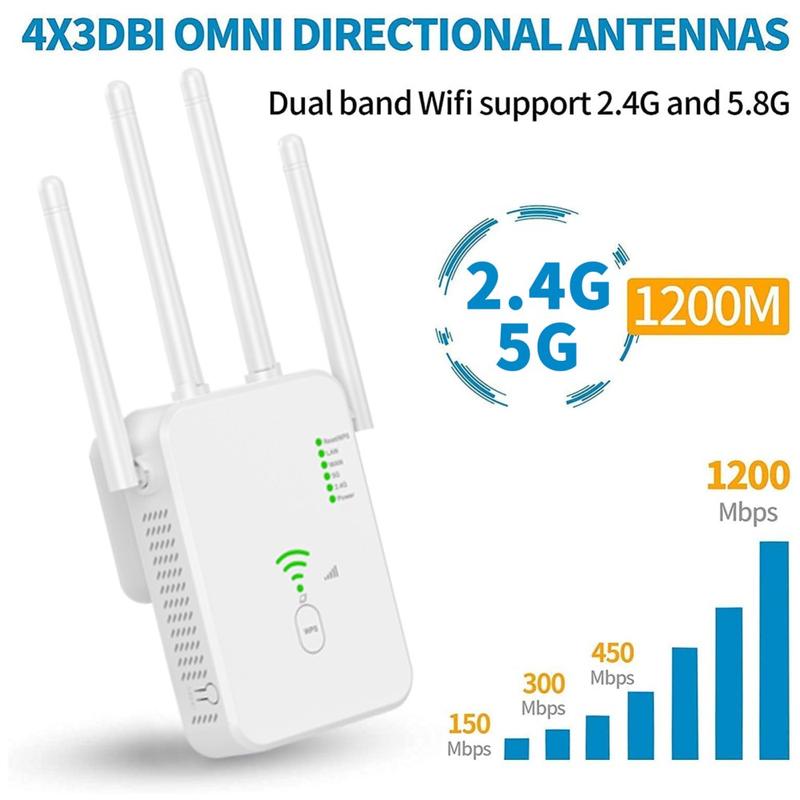 • Amplificateur/routeur WiFi double bande UNT-10 - Répéteur de signal sans fil 1200 Mbps avec 4 antennes - Prise UE