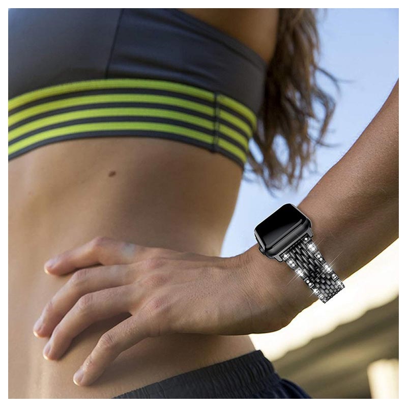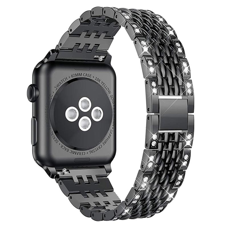 This uniquely designed Apple Watch loop is made of stainless steel and decorated with sparkly rhinestones. Adjust the length to fit your wrist perfectly. The Glam stainless steel strap for Apple Watch Series 5/4/3/2/1 features a secure metal clasp.