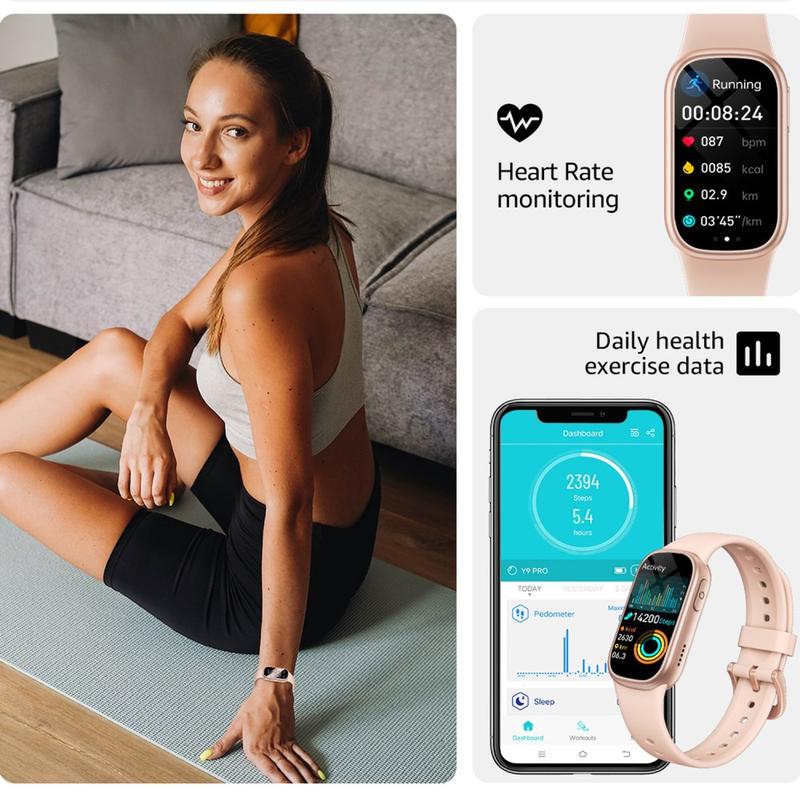 Bracelet d\'activité IP67 - Mesure la fréquence cardiaque, le nombre de pas, l\'activité physique et le sommeil - Rose
