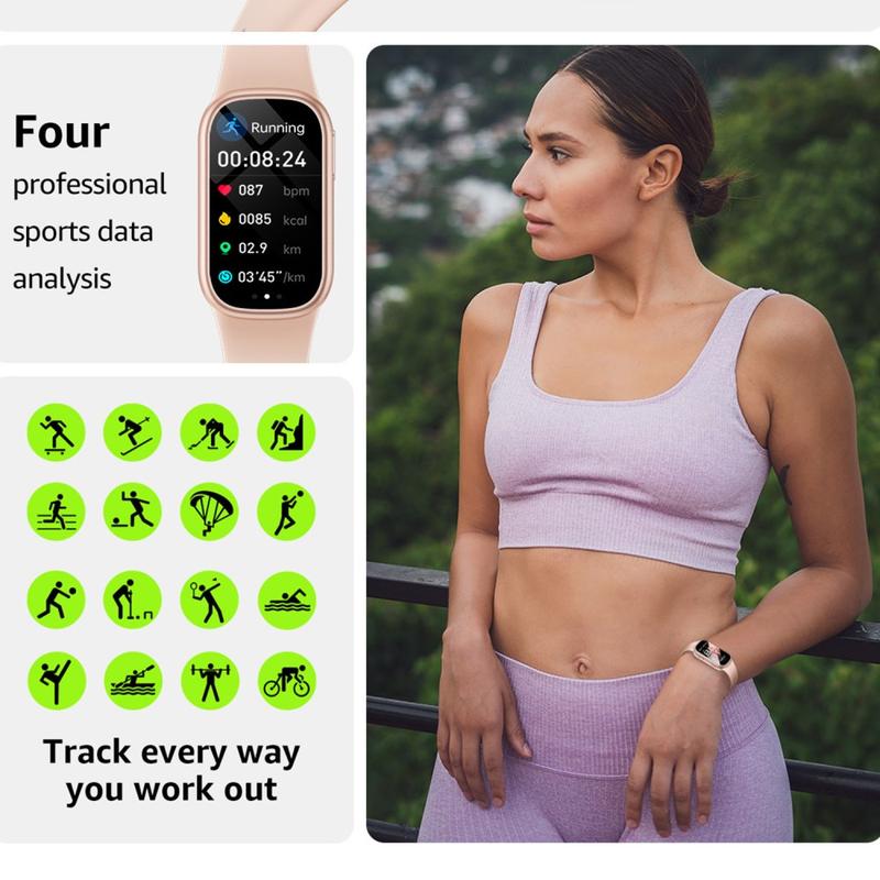 La montre prend en charge les appels Bluetooth lorsqu'elle est connectée à votre smartphone, vous permettant de répondre ou de rejeter des appels directement depuis votre poignet. Elle vous aide également à suivre vos données quotidiennes clés telles que le nombre de pas, les calories, la distance parcourue, vos habitudes de sommeil et certains indicateurs de santé, vous offrant ainsi une vision plus complète de votre activité quotidienne et de vos habitudes de vie. Avec ses multiples modes sportifs et la prise en charge de jusqu'à 147 options d'entraînement, elle est parfaitement adaptée aux utilisateurs qui souhaitent adopter une routine plus active et mieux organisée.