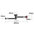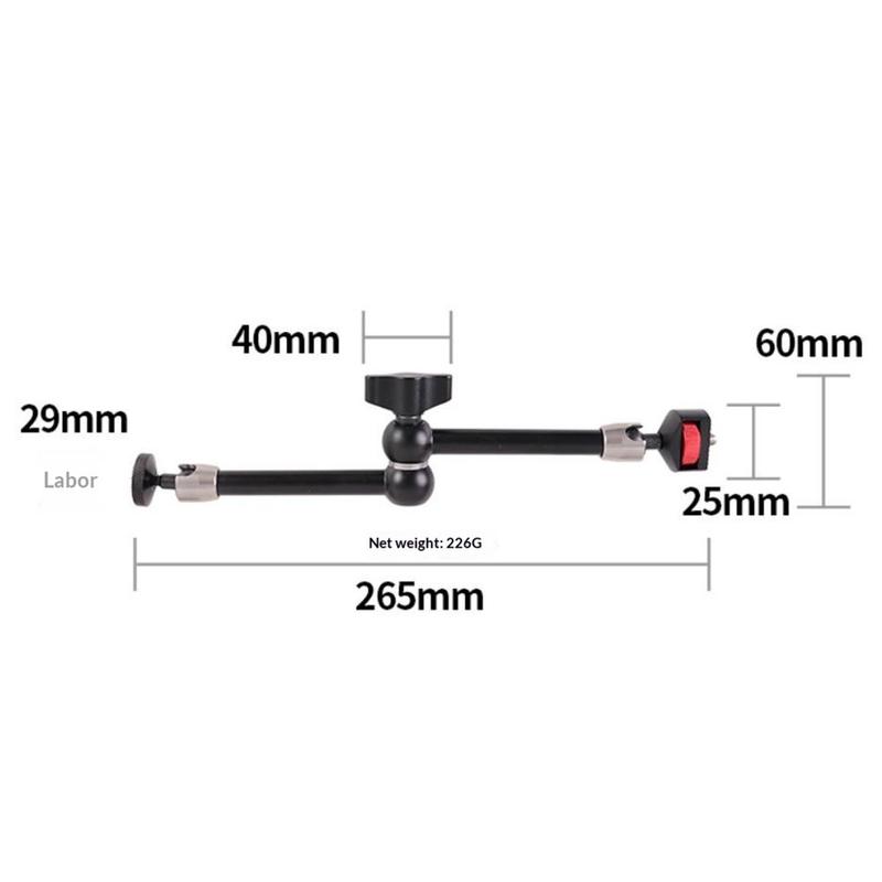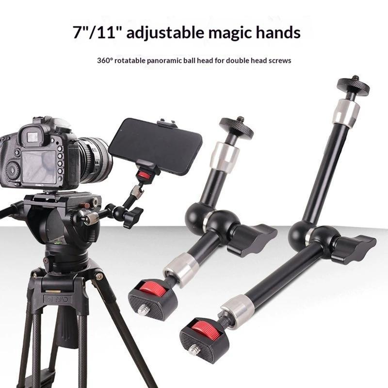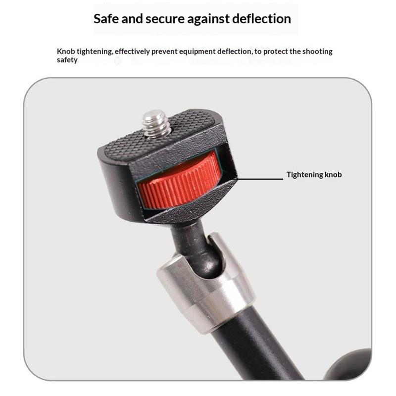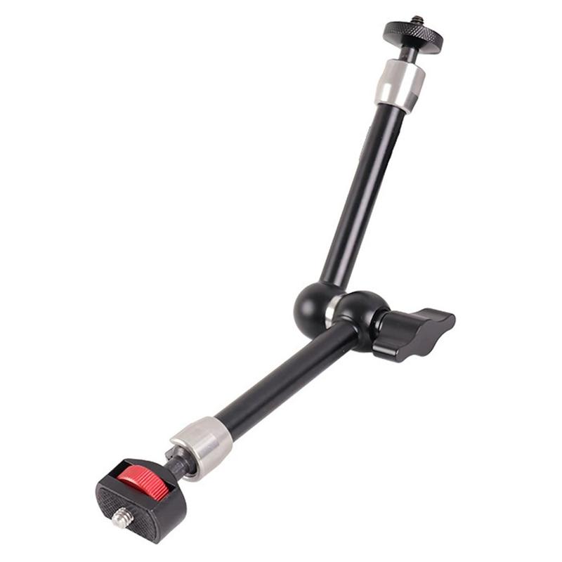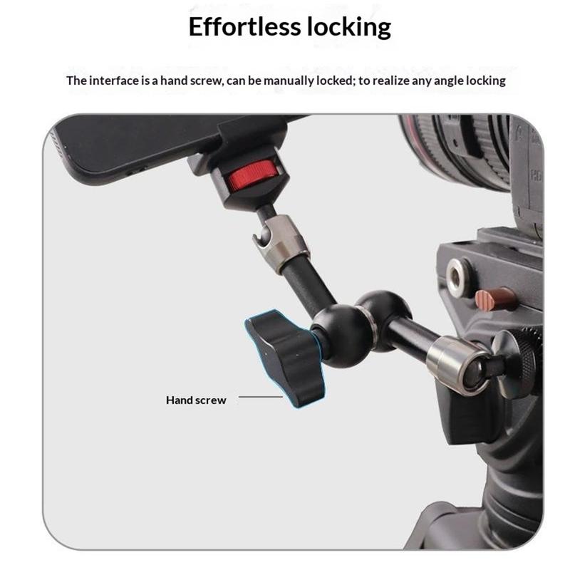 La conception à double rotule permet un réglage à 360° pour un positionnement plus précis, tandis que le filetage standard de 1/4" aux deux extrémités le rend compatible avec une large gamme d'équipements. Fabriqué en alliage d'aluminium, le bras offre une construction solide et durable tout en restant suffisamment léger pour être facilement transporté et utilisé au quotidien.