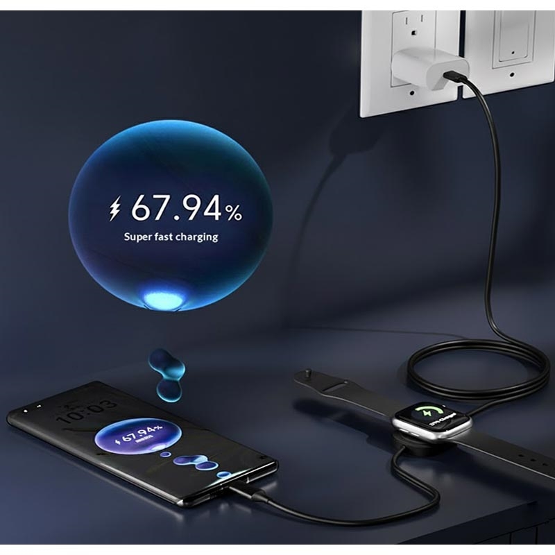 - Le socle magnétique de charge sans fil pour Apple Watch garantit un alignement sûr et une charge stable.