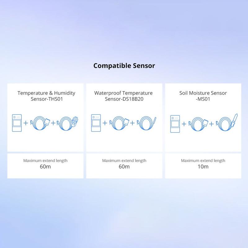 - Fonctionne avec les capteurs Sonoff RJ11 tels que THS01 et DS18B20 avec prise RJ11