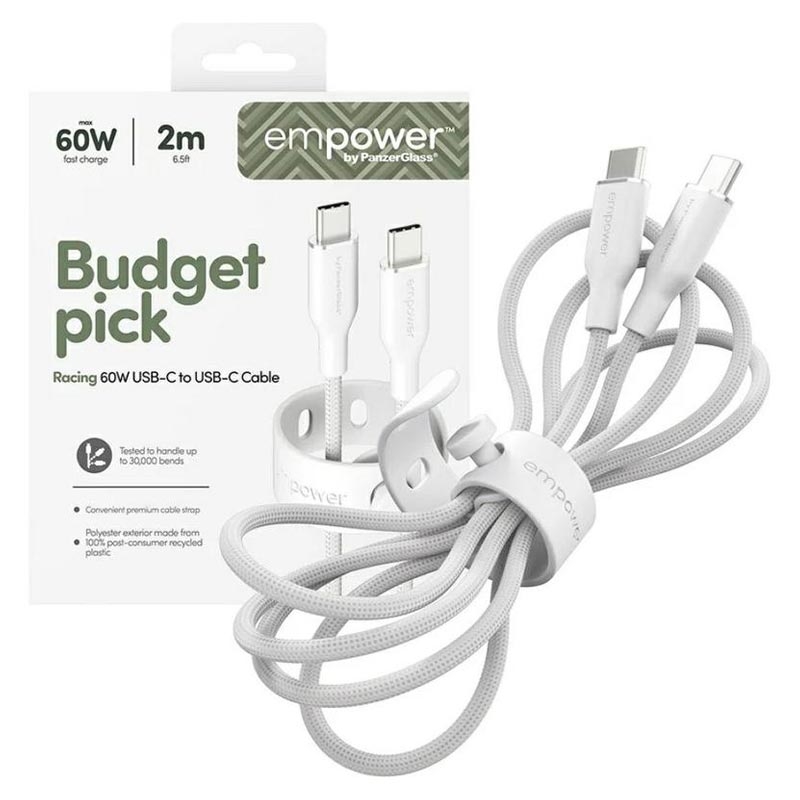 Le câble USB-C vers USB-C empower by PanzerGlass Racing allie vitesse, confort et durabilité en un seul câble. Son toucher ultra-doux le rend agréable à utiliser au quotidien, tandis que sa conception tressée renforcée lui permet de résister à une utilisation intensive. Avec une recharge rapide de 60W et des matériaux durables, c'est un choix fiable que vous pouvez utiliser en toute confiance.