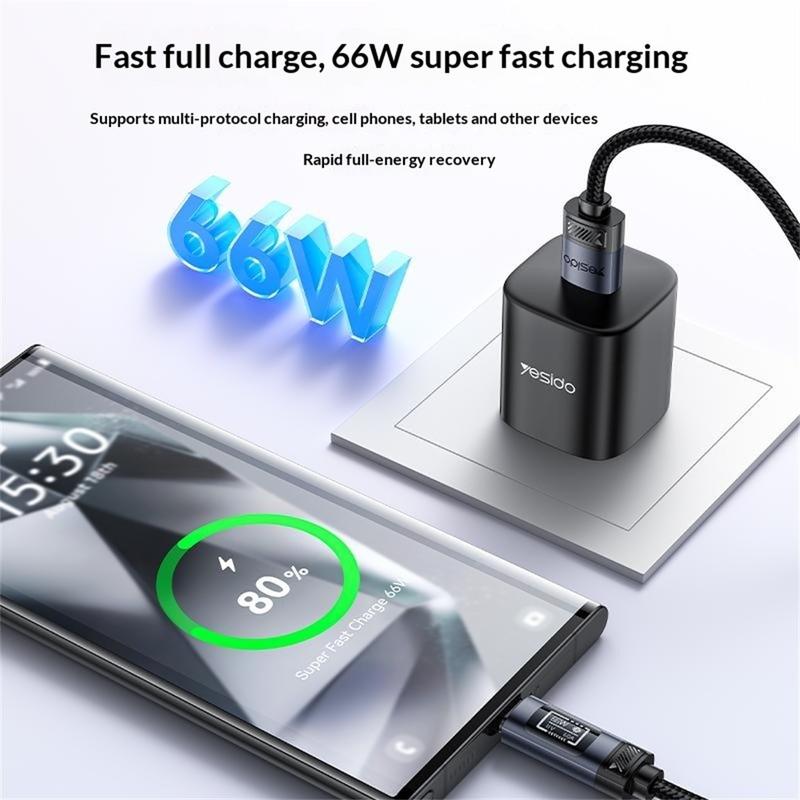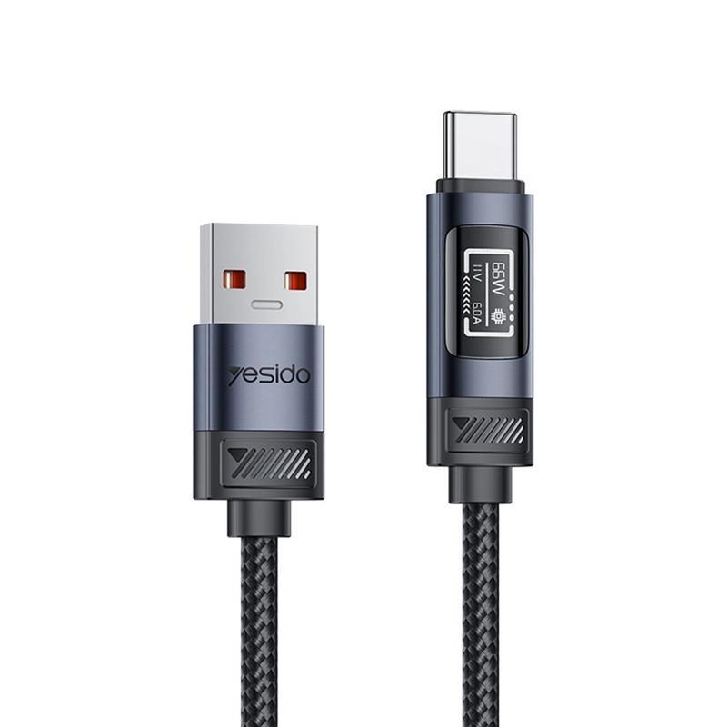 Câble de recharge rapide Yesido CA138C 66W - Câble de données tressé en nylon USB-A vers USB-C avec écran numérique OLED - 1.2m