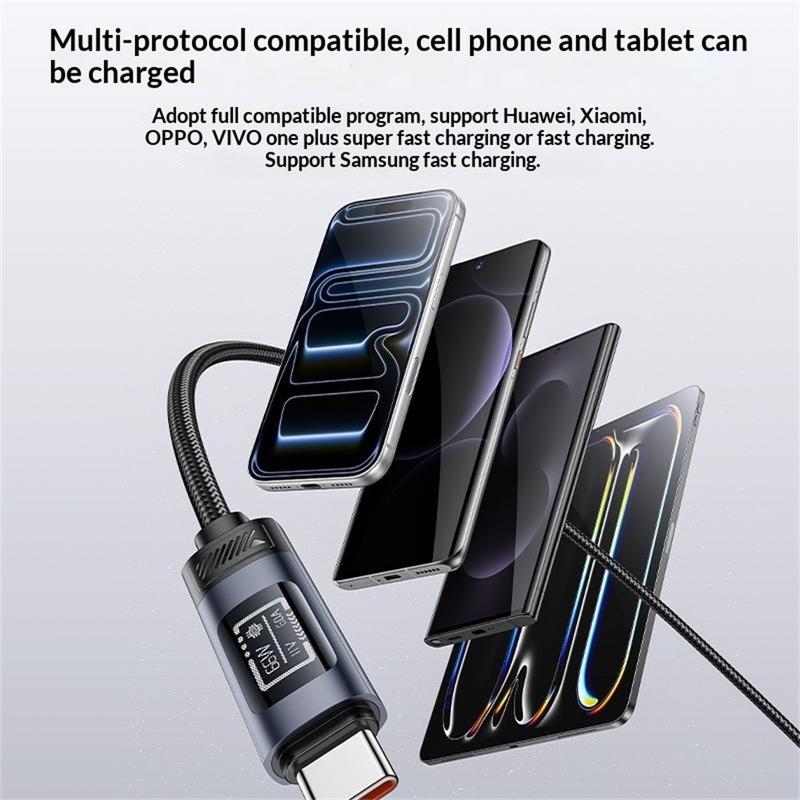 - Câble de recharge rapide USB-A vers USB-C avec affichage numérique OLED de la puissance
