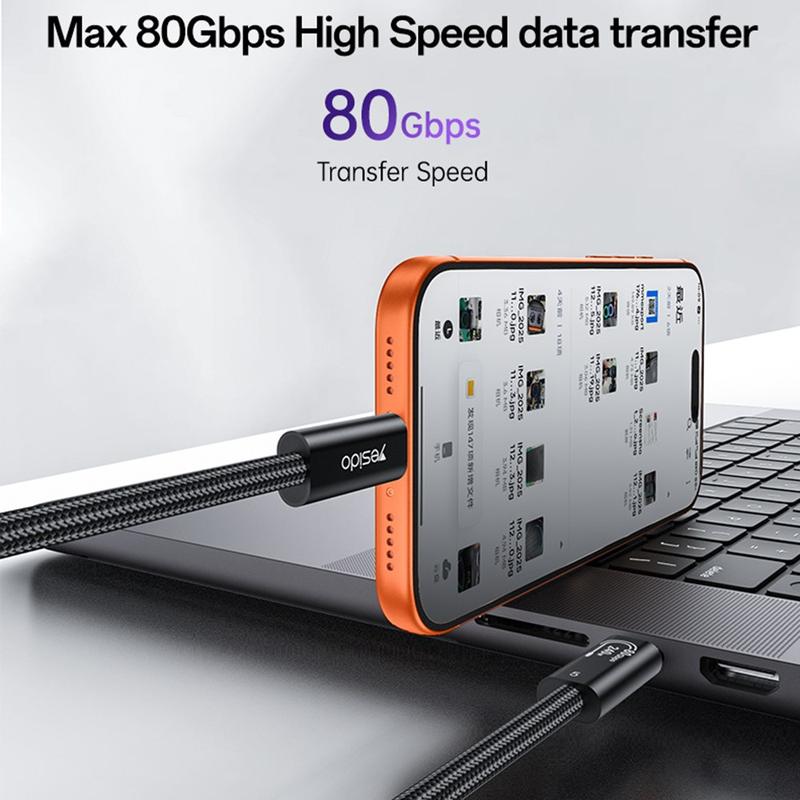Câble Yesido CA211 Thunderbolt 5 USB-C vers USB-C - 80 Gbit/s, recharge rapide 240W, vidéo 16K, 1m