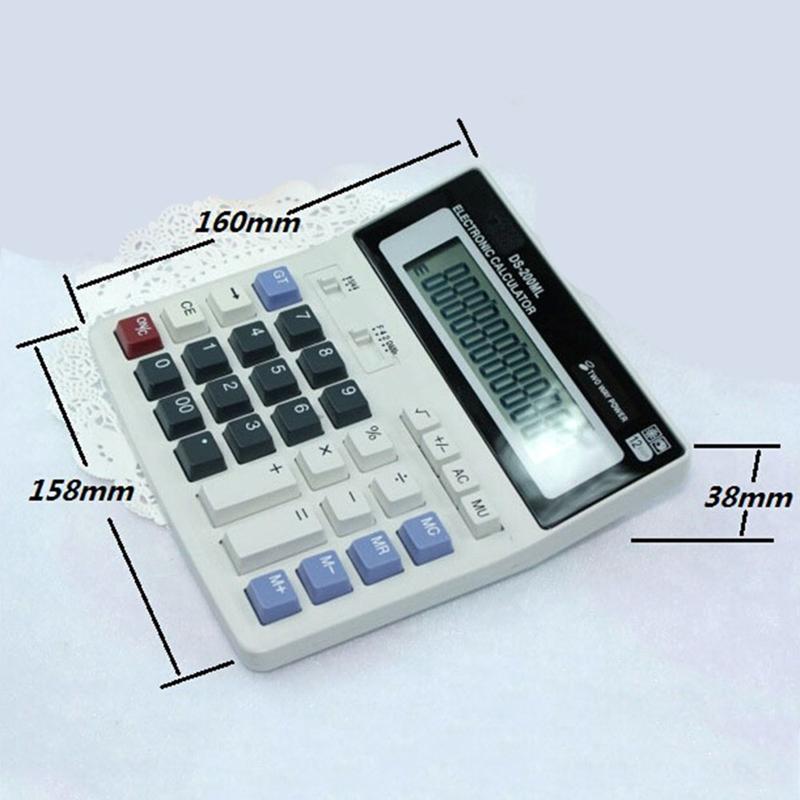 Calculatrice de bureau DS-200ML - Affichage LCD à 12 chiffres, double alimentation solaire et batterie, utilisation au bureau et à l'école