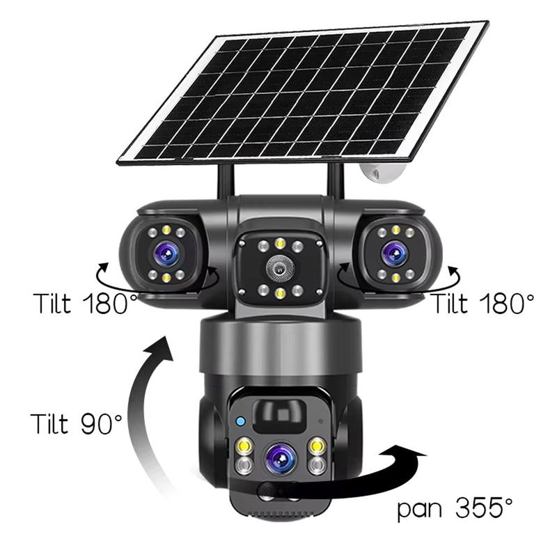 Couvrez plus d'espace avec moins d'angles morts grâce à la caméra de sécurité PTZ solaire à 3 objectifs V380 Pro. Conçue pour la surveillance extérieure, elle combine deux objectifs fixes et un objectif PTZ rotatif, ce qui vous permet de garder un œil sur les zones clés tout en pouvant effectuer des panoramiques et des inclinaisons à distance lorsque vous souhaitez examiner quelque chose de plus près. La résolution 2K (2560 1440) et la compression H.265 offrent des détails nets tout en réduisant l'utilisation de l'espace de stockage par rapport aux anciens formats.