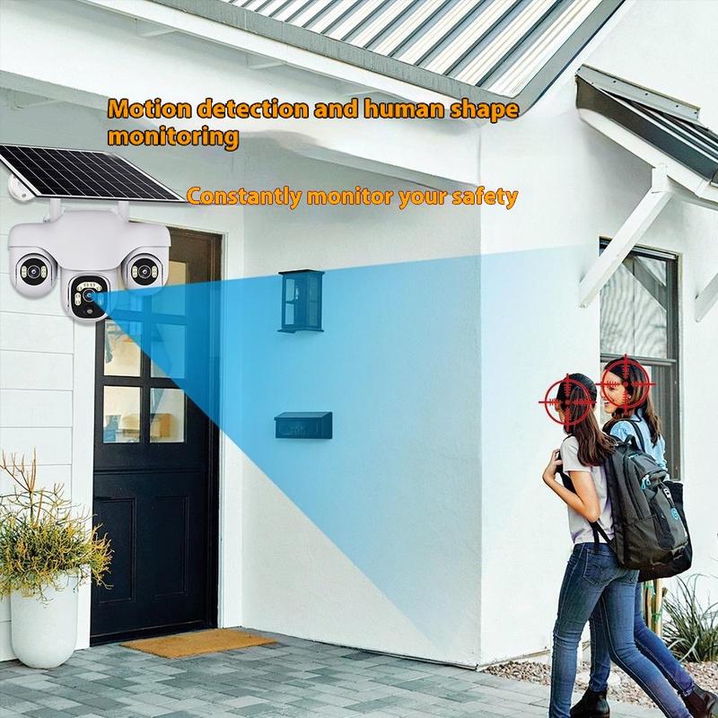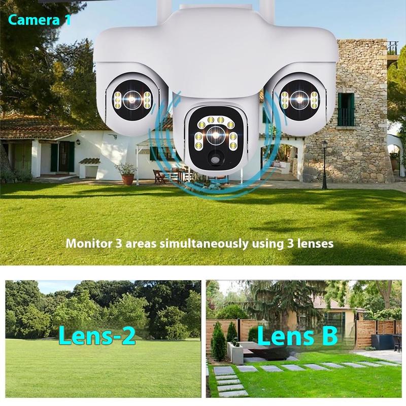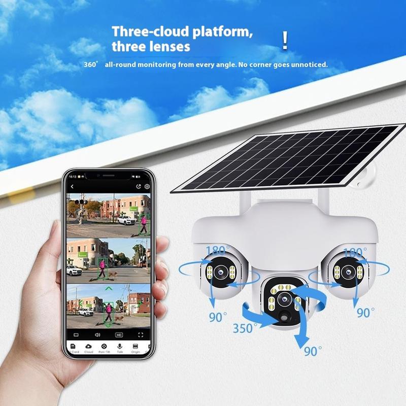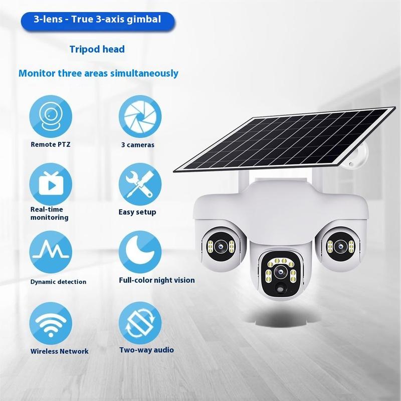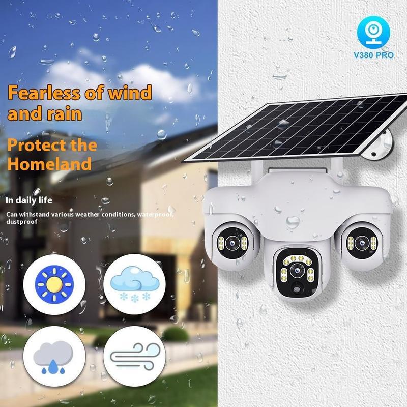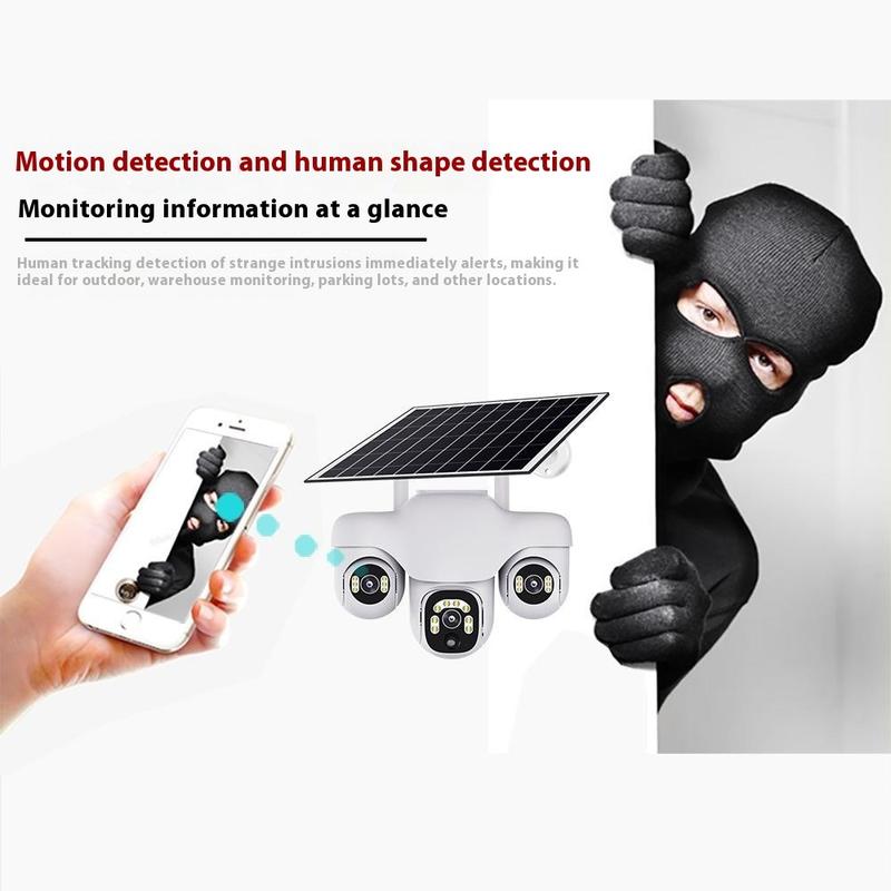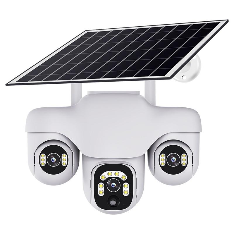 Caméra de sécurité PTZ VTS31 V380 à énergie solaire avec triple objectif - Caméra de surveillance WiFi d'extérieur avec détection de mouvement