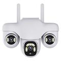 Ce modèle combine une couverture panoramique, des fonctions de détection intelligentes et une surveillance nocturne dans un design adapté à l'extérieur. Grâce à sa configuration à trois objectifs et à sa structure PTZ rotative, elle peut surveiller une zone beaucoup plus large que de nombreuses caméras standard à objectif unique, contribuant ainsi à réduire les angles morts autour de votre propriété.