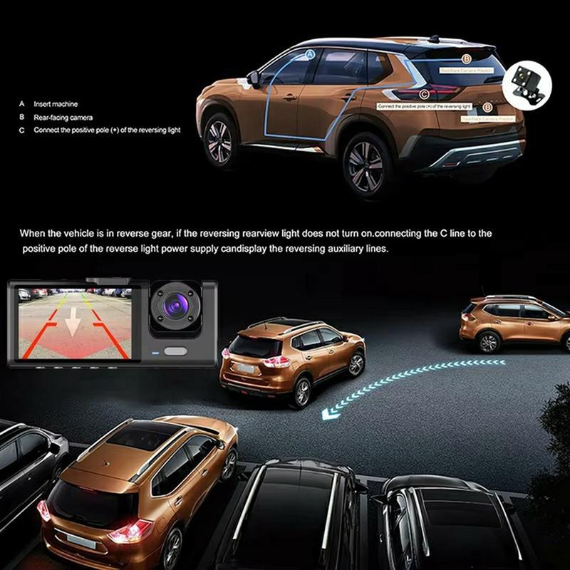 Caméra embarquée triple objectif 1080P WiFi pour voiture - Caméra avant/intérieure/arrière avec moniteur de stationnement, capteur G et vision nocturne
