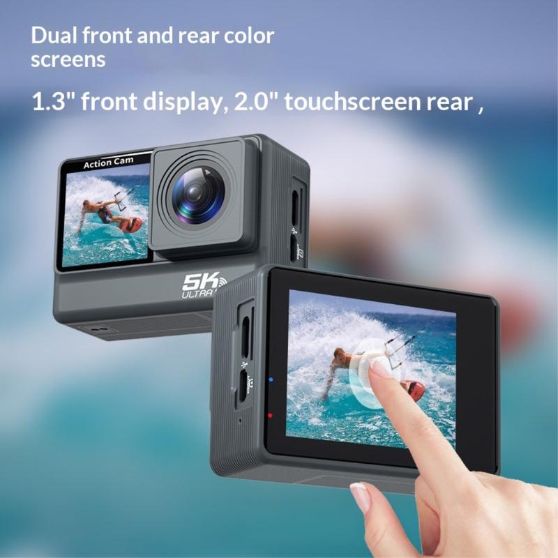 Caméra d'action double écran F308AATR - Caméra sportive HD 5K avec stabilisation 6 axes, WiFi et boîtier étanche